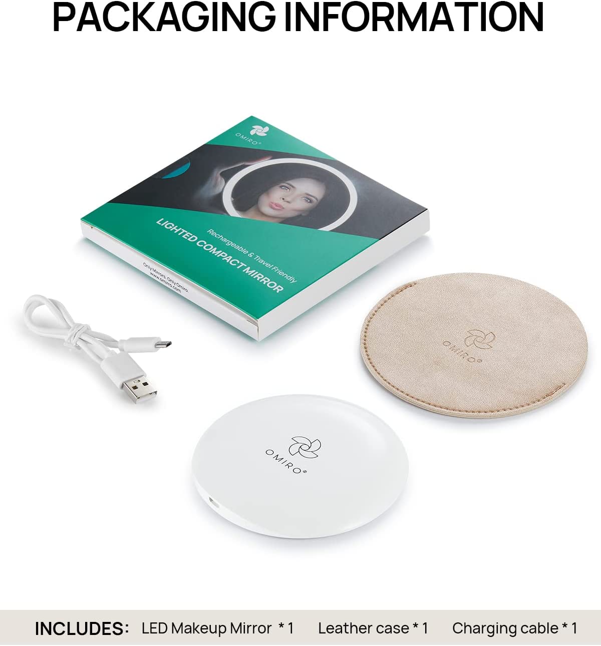 OMIRO kompakt makeup-spejl med lys, LED-spejl til rejser og pung, gave til kvinder, fødselsdagsgave. En jeg elsker dig gave til hende (hvid)