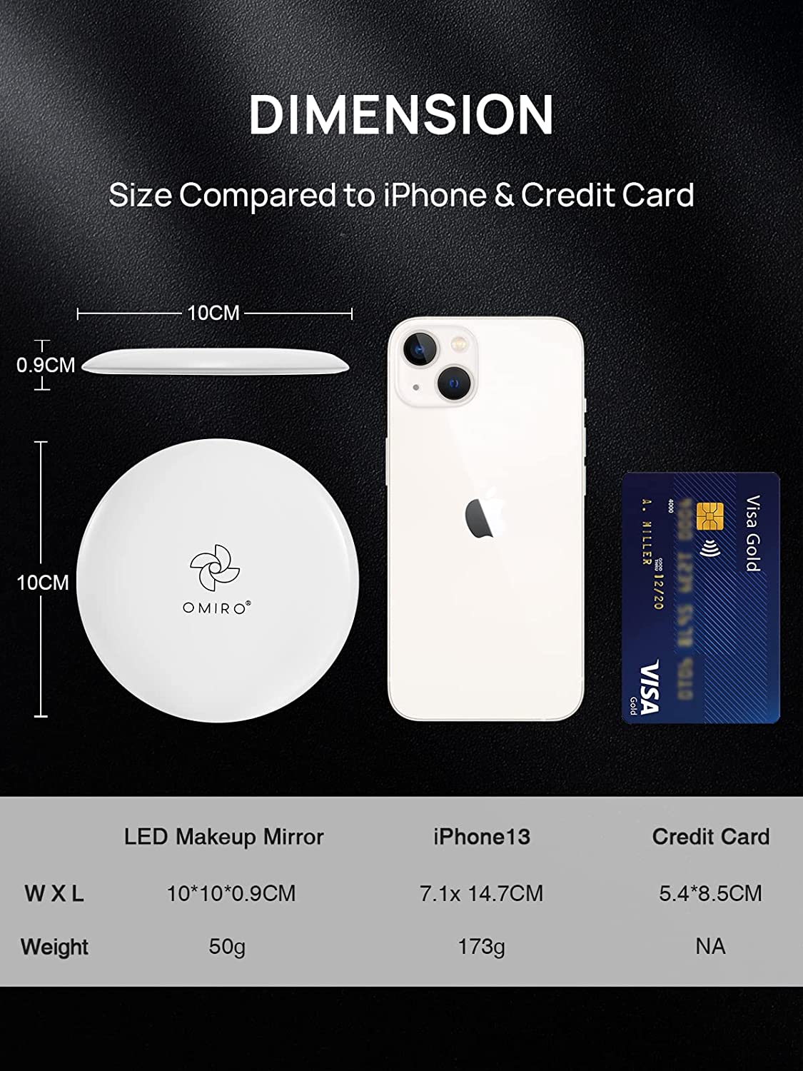 - Lille og tynd: fjerlet og slankt design (50 gram, 10 cm*1 cm), let at få i din pung og håndtaske uden at skulle byrde. Et bærbart lille spejl til din rejse. Et meget praktisk og nyttigt værktøj til at forfine din makeup, når og hvor du har brug for det.