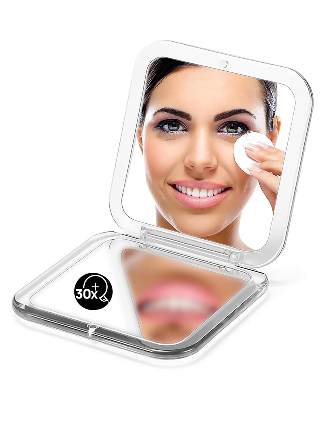 - ACRYLIC BODY & COMPACT FOR TRAVEL: Two mirrors are embed into a whole PMMA made body, it’s glittering and translucent and shines bright like a diamond; 3.34” diameter and 0.5” thick size fit your purse/handbag and easy to carry it in a social gathering, during a concert or a girls’ night out