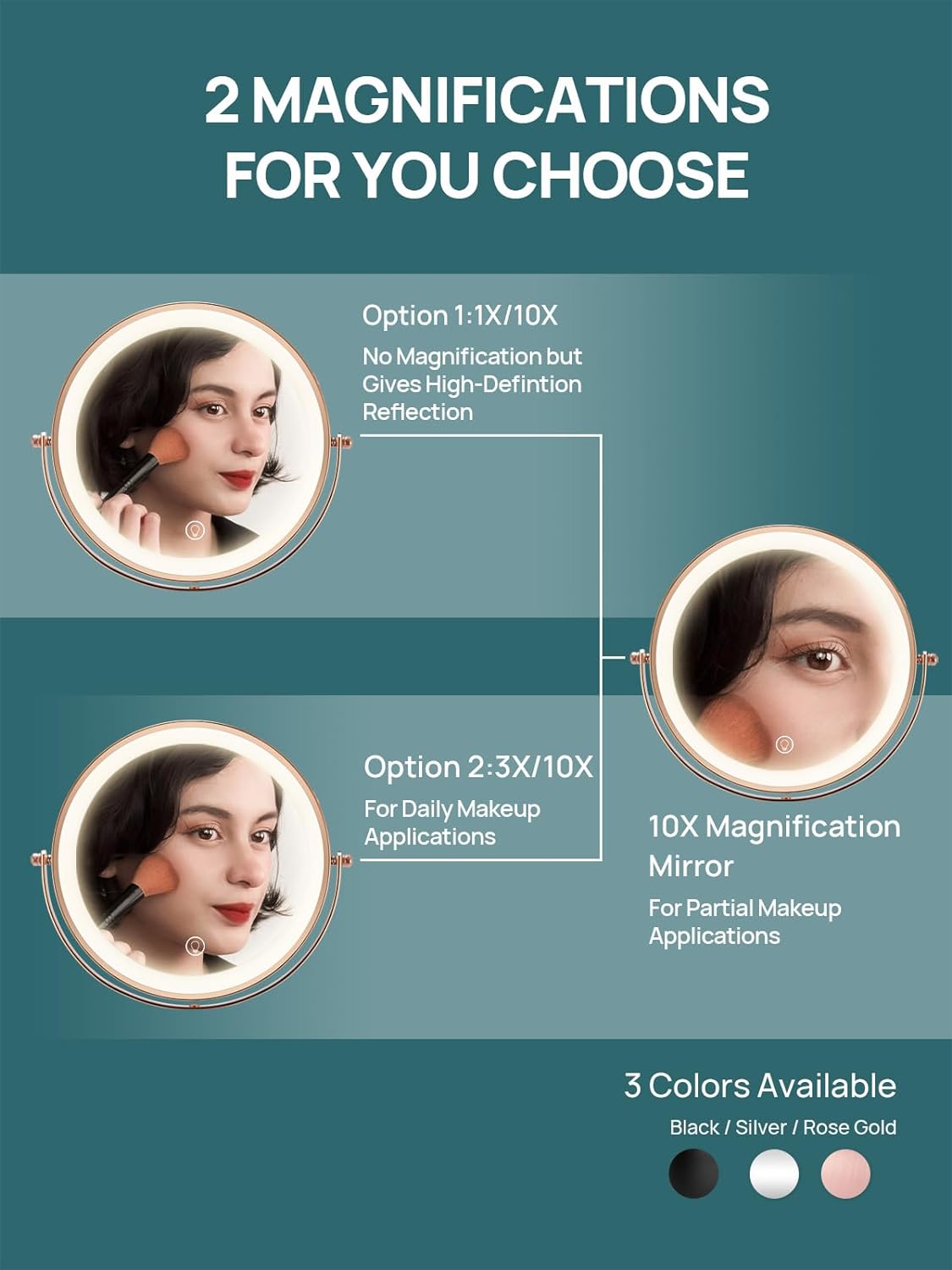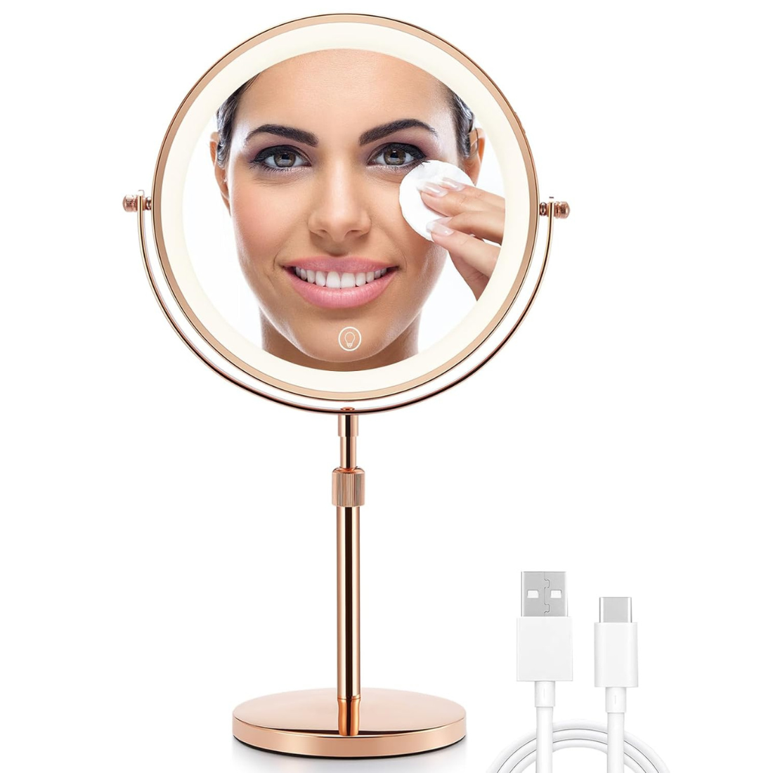 OMIRO 8.5 Inches Lighted Makeup Mirror with 3X/10X Magnifications, Double Sided Swivel Vanity Mirror with Height-Adjustable Stand (Rose Gold)