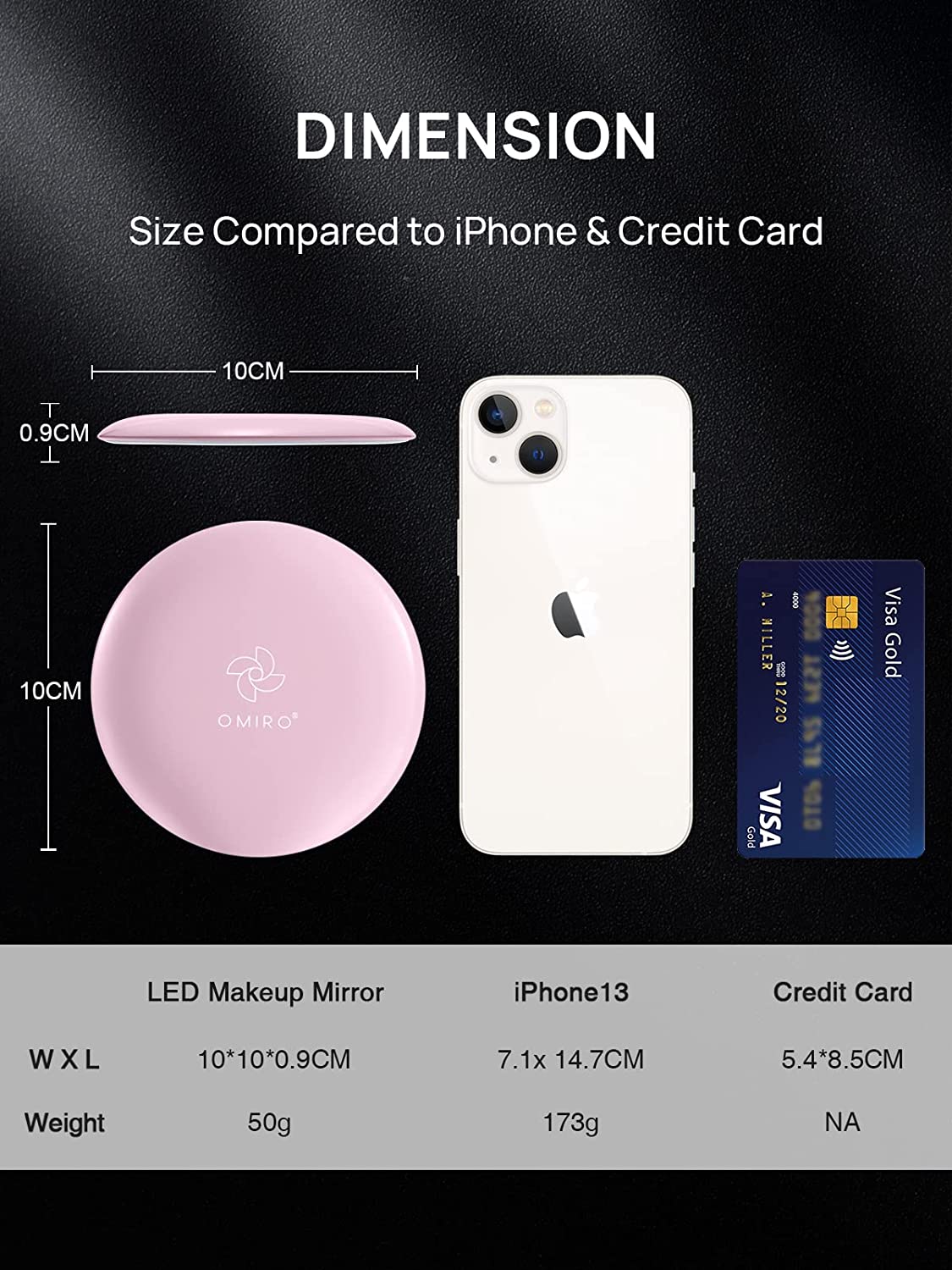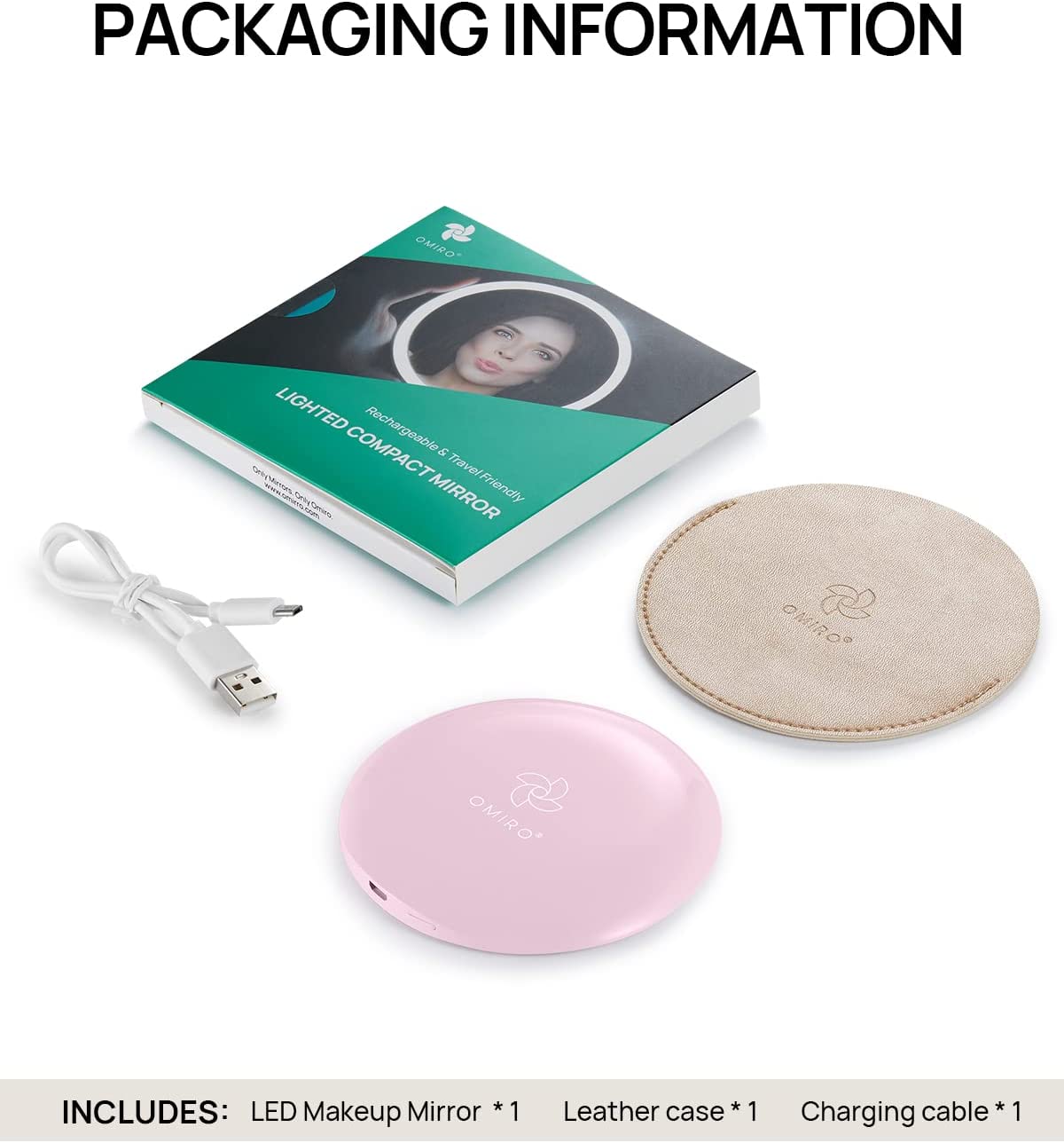 OMIRO Compact Makeup Mirror with Lights, LED Mirror for Travel and Purse, Women Gift, Birthday Gift. An I Love You Gift for Her (Pink)