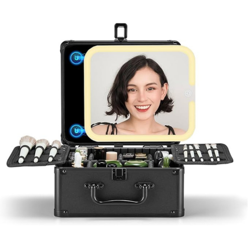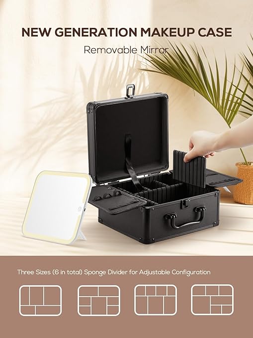OMIRO Makeup Case, Makeup Bag with Light Up Mirror Set, Makeup Organizer Bag with Magnet Makeup Mirror for Women and Girls