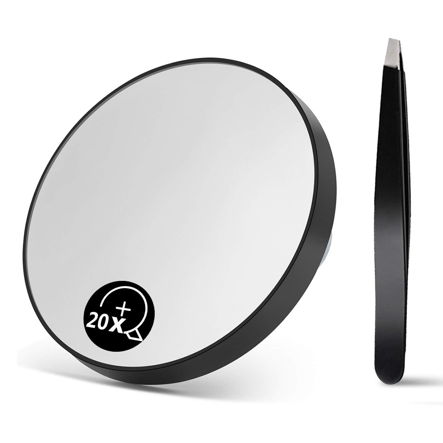 OMIRO 10X(300R) Magnifying Mirror and Eyebrow Tweezers Kit, 3.5" Two Suction Cups Magnifier Travel Set