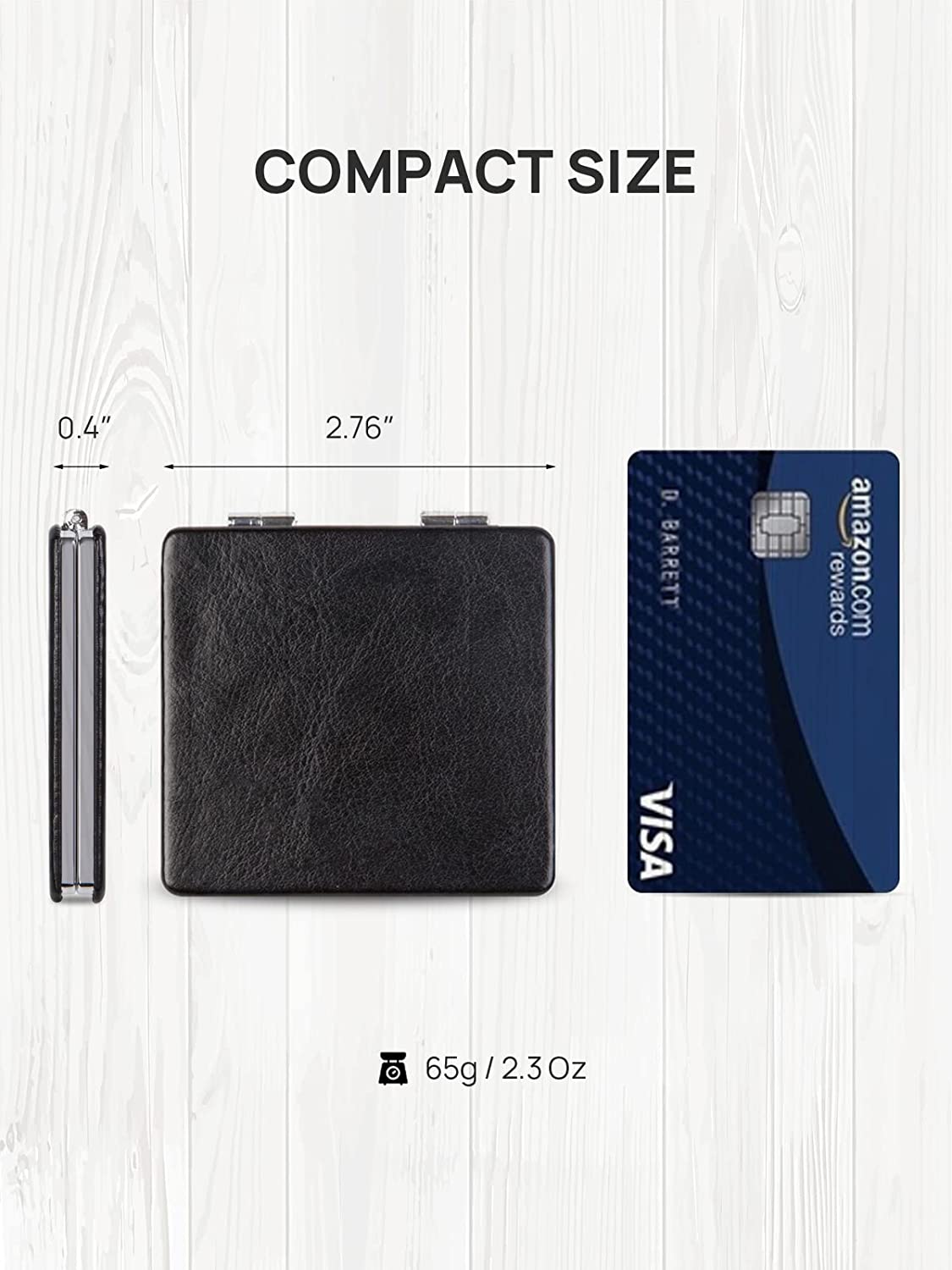 - HIGH-QUALITY ARTIFICIAL LEATHER: Fashionable and exquisite pocket mirror in PU cover for a better hand feel.