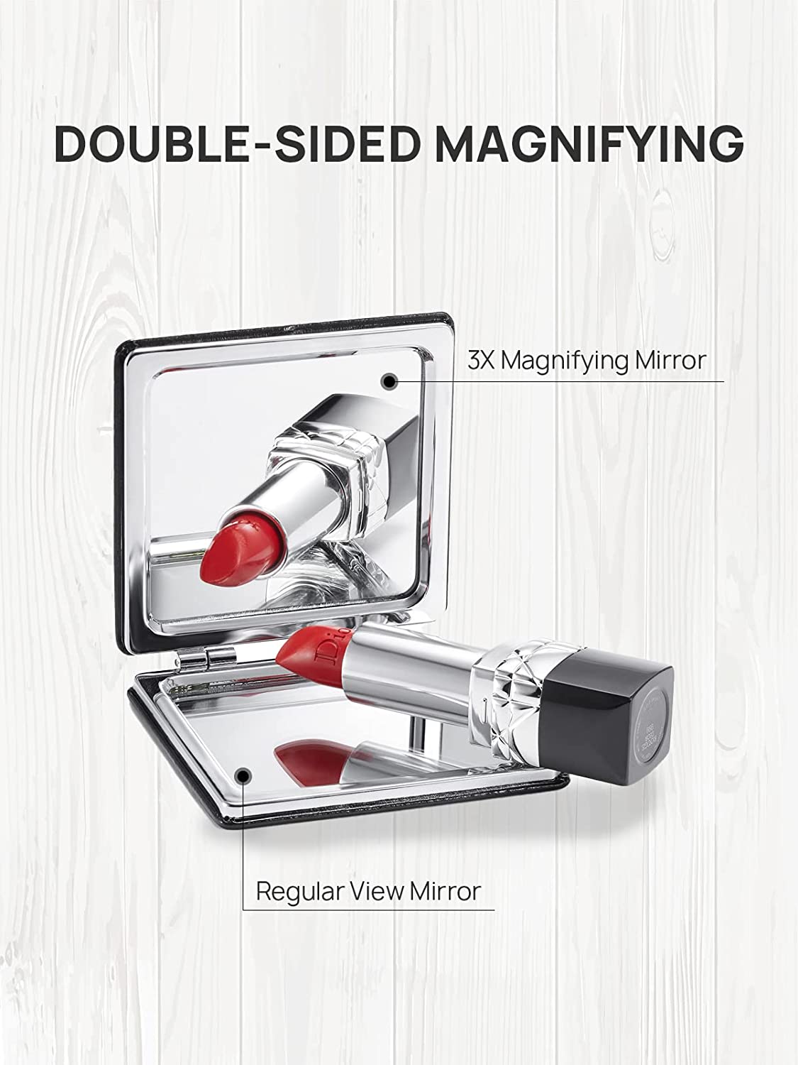 - SLIM DESIGN: 2.76" x 2.76" x 0.4" A small, slimline mirror that fits on your purse or handbag and is easy to carry wherever you go.