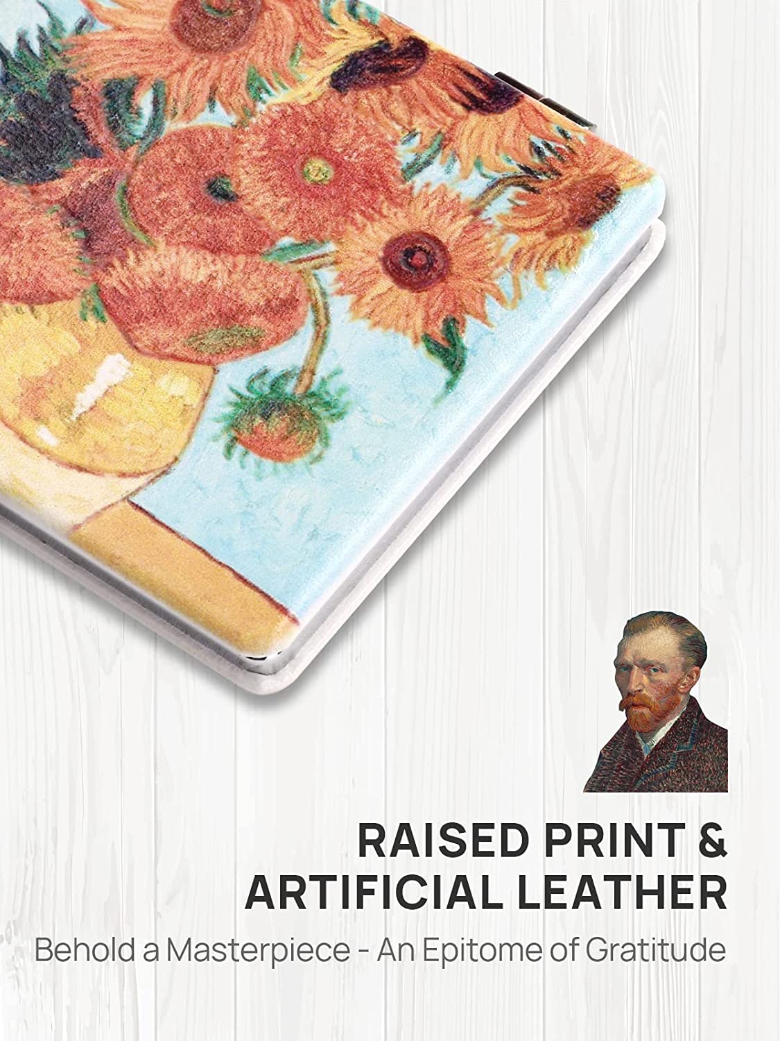 OMIRO 1X/3X Magnifying Mirror, Unique Painting Compact Mirror with Classical PU Leather (Sunflowers)