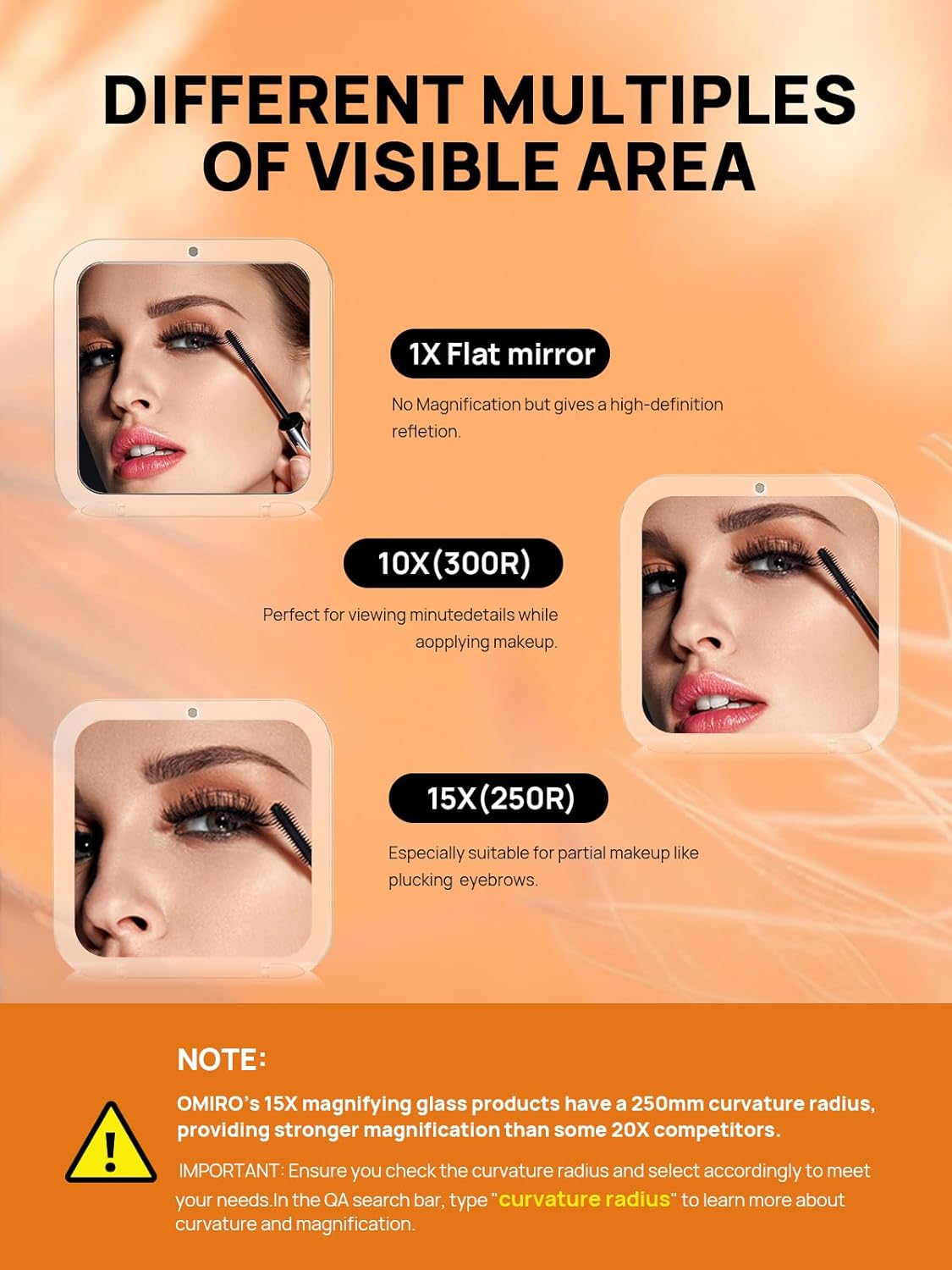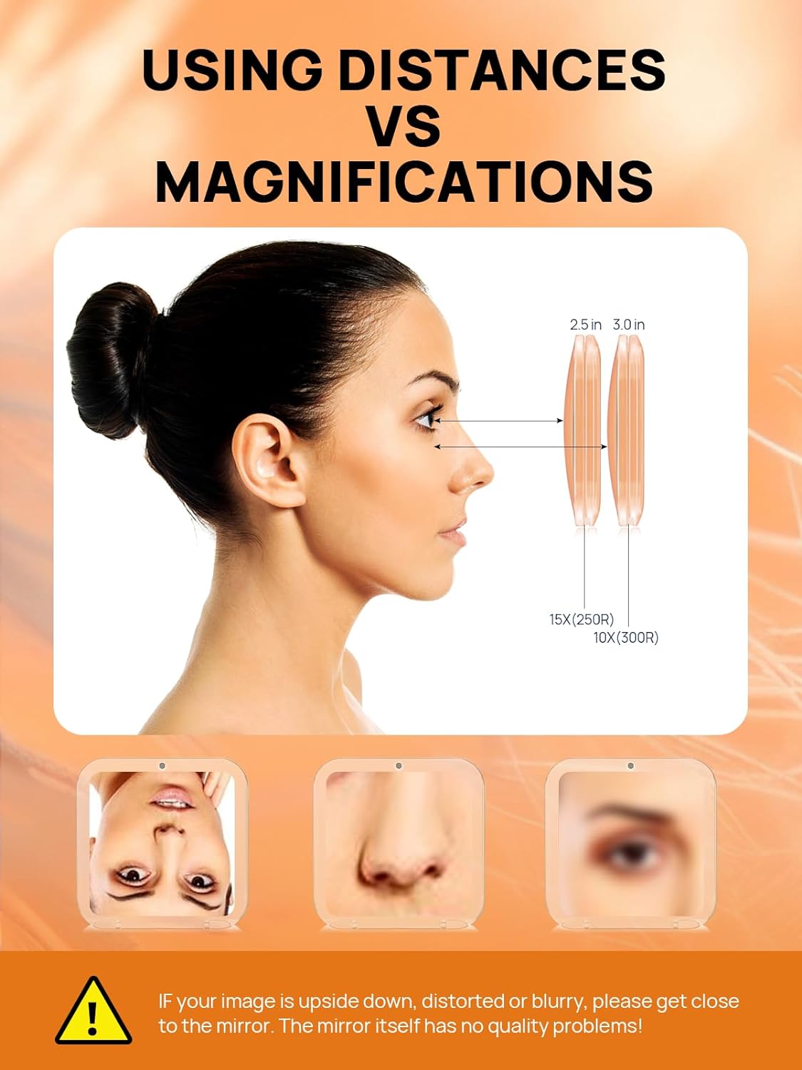 - 1X & 15X MAGNIFICATION: Two mirrors meet all your needs for cosmetic use - 1X HD regular mirror reflects your real face. In contrast, the premium distortion-free 15X mirror works great for mascara, tweezing and plucking, flossing, etc.