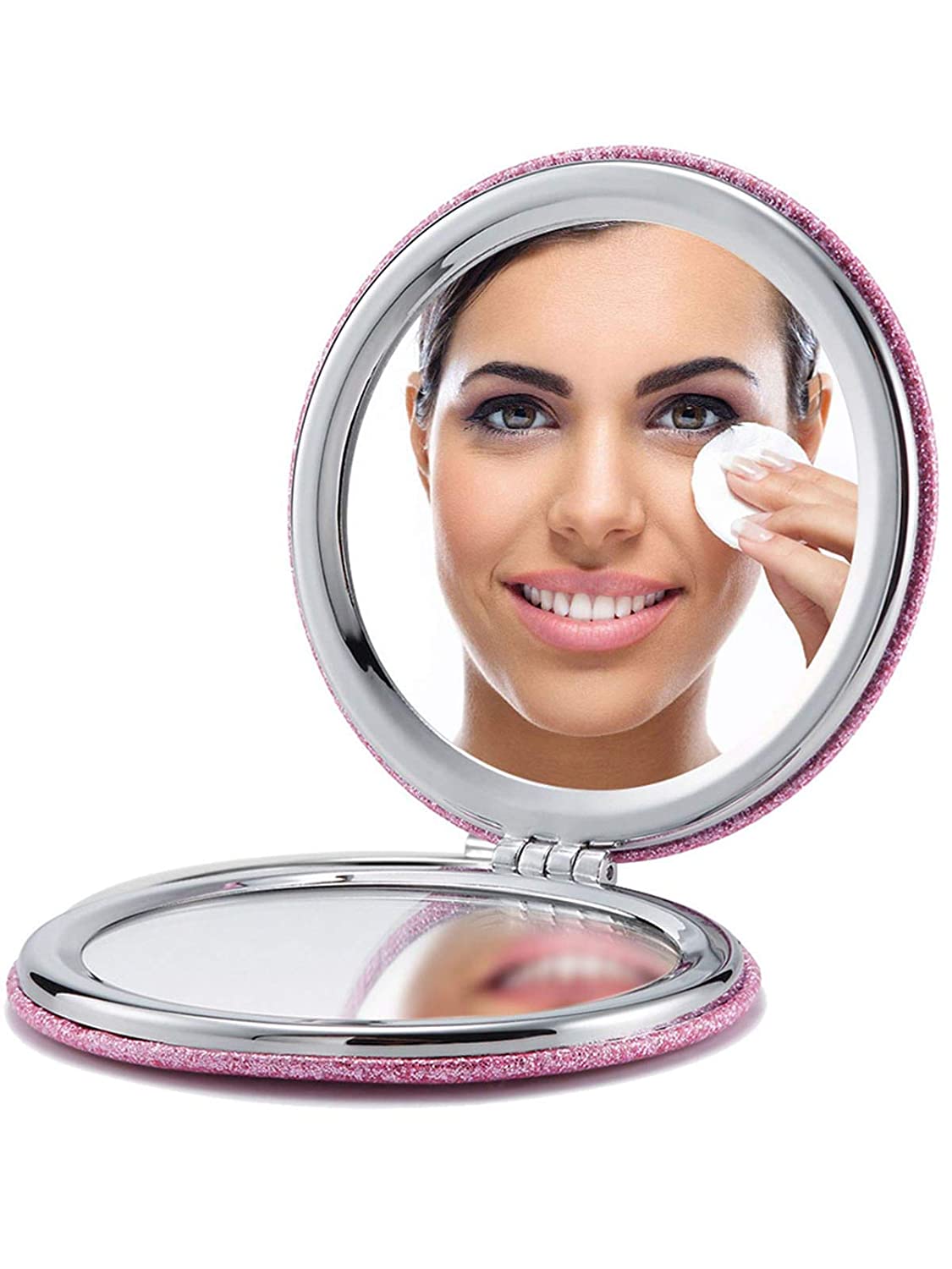 - GLITTER SILVER ARTIFICIAL LEATHER: Fashionable and exquisite pocket mirror in PU cover for a better hand feel.