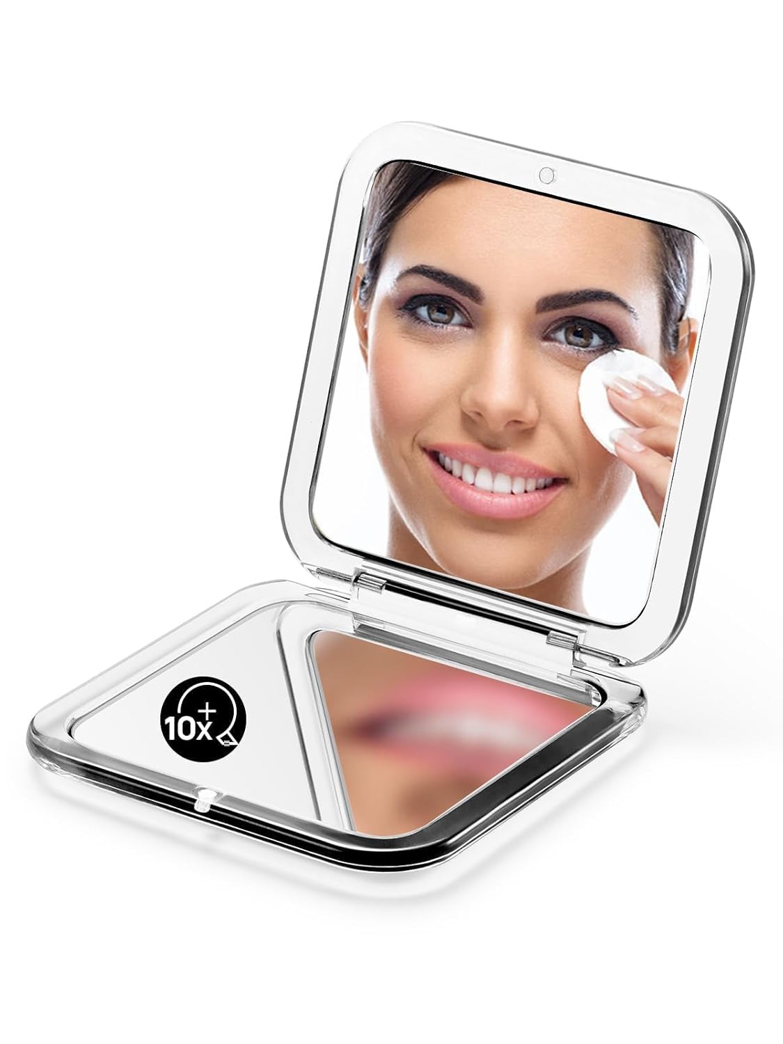 - 1X & 10X MAGNIFICATION: Two mirrors meet all your needs for cosmetic use - 1X HD regular mirror reflects your real face. In contrast, the premium distortion-free 10X mirror works great for mascara, tweezing and plucking, flossing, etc.