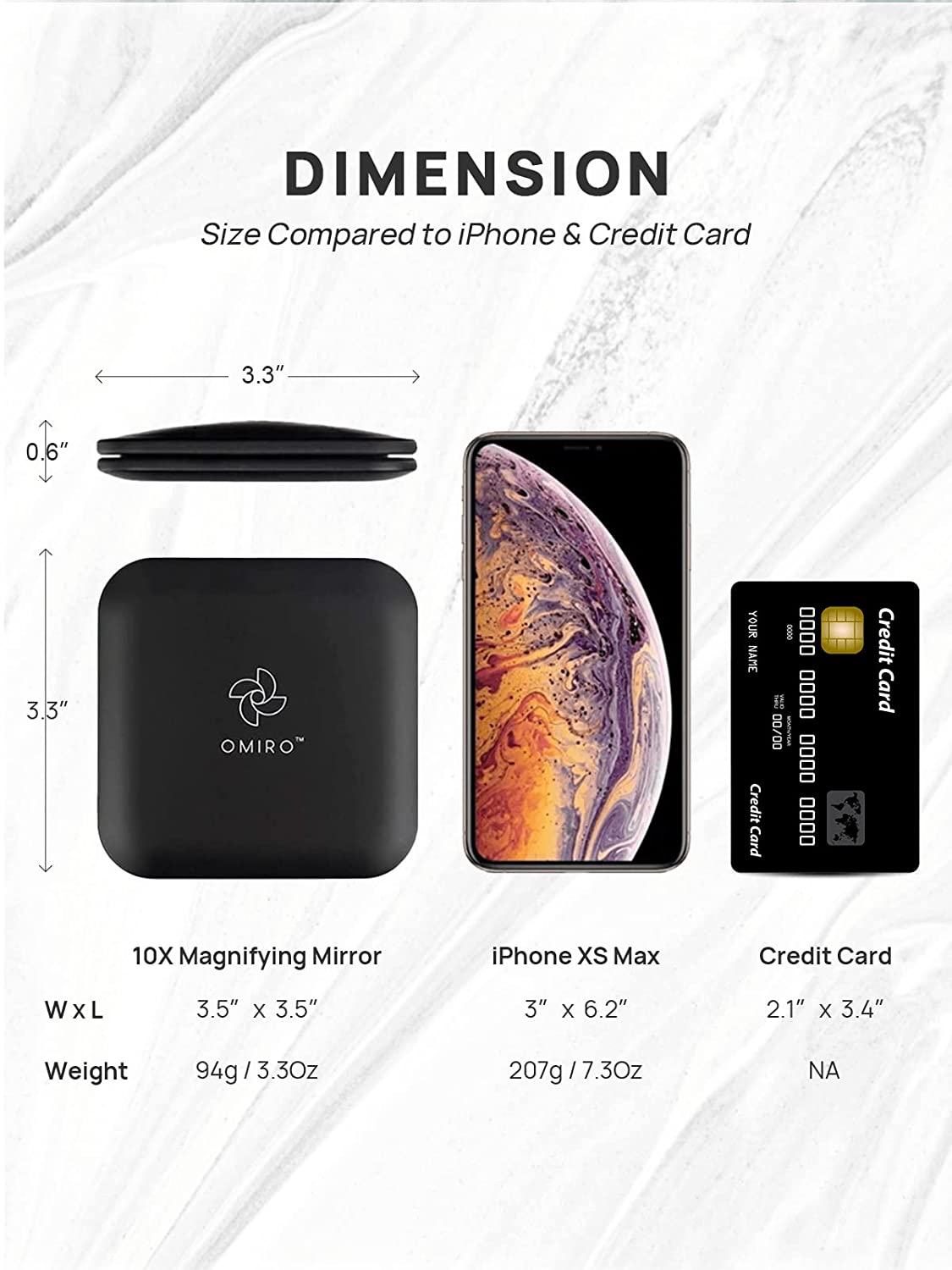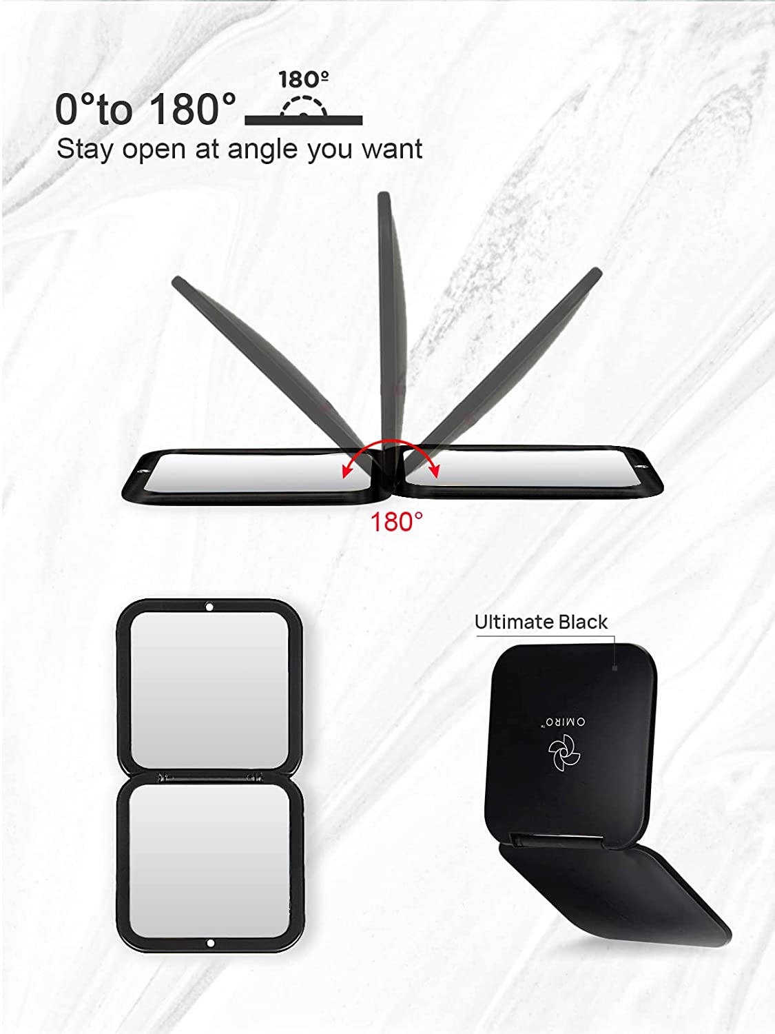 OMIRO Folding Compact Mirror, 1X/10X Magnification 3½” Pocket Size Square Hand Mirror for Travel Makeup (Black)