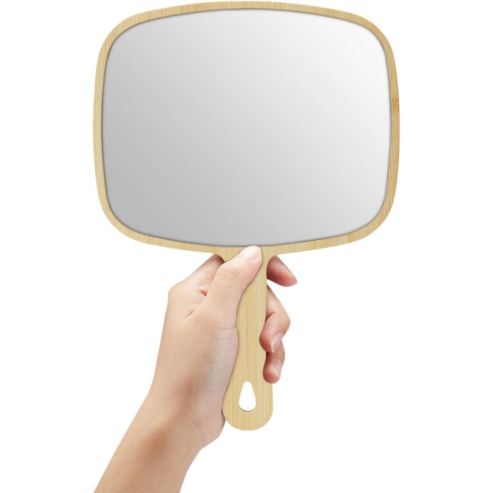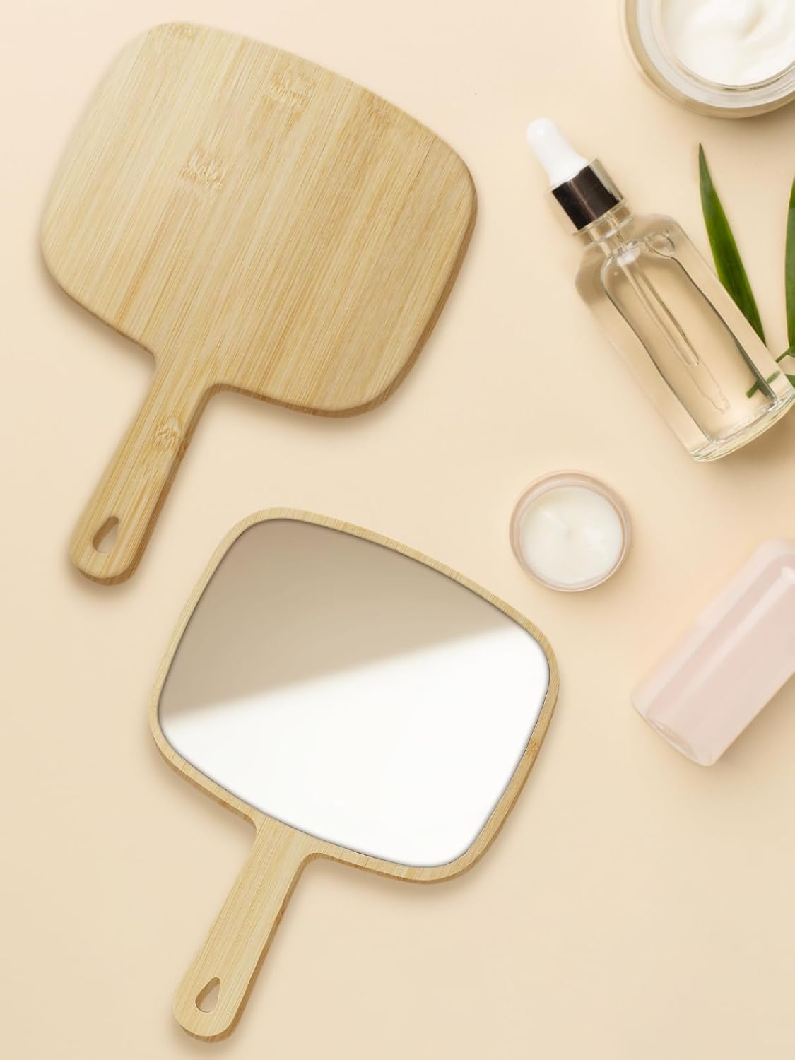 - Stream-Shaped Bamboo Mirror: Made from natural bamboo with a gentle curved frame, this handheld mirror is more durable, which is great for travel and vanities.