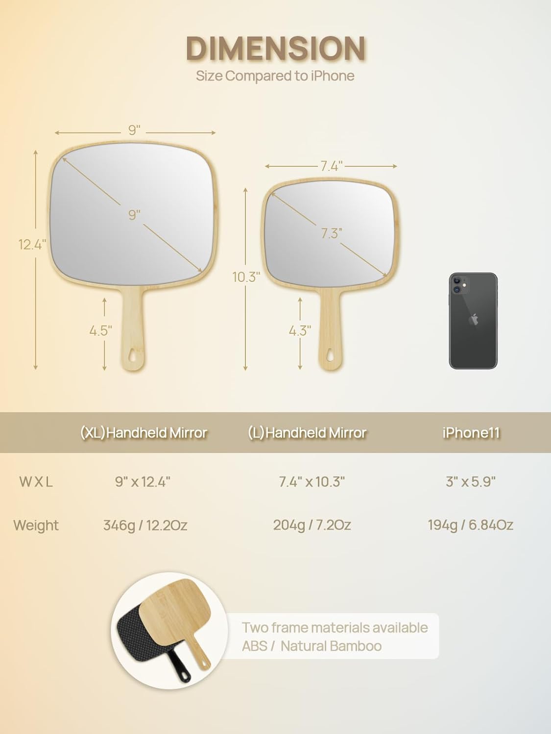 OMIRO Hand Mirror, Large Natural Bamboo Handheld Mirror with Handle, 10.3" L x 7.4" W