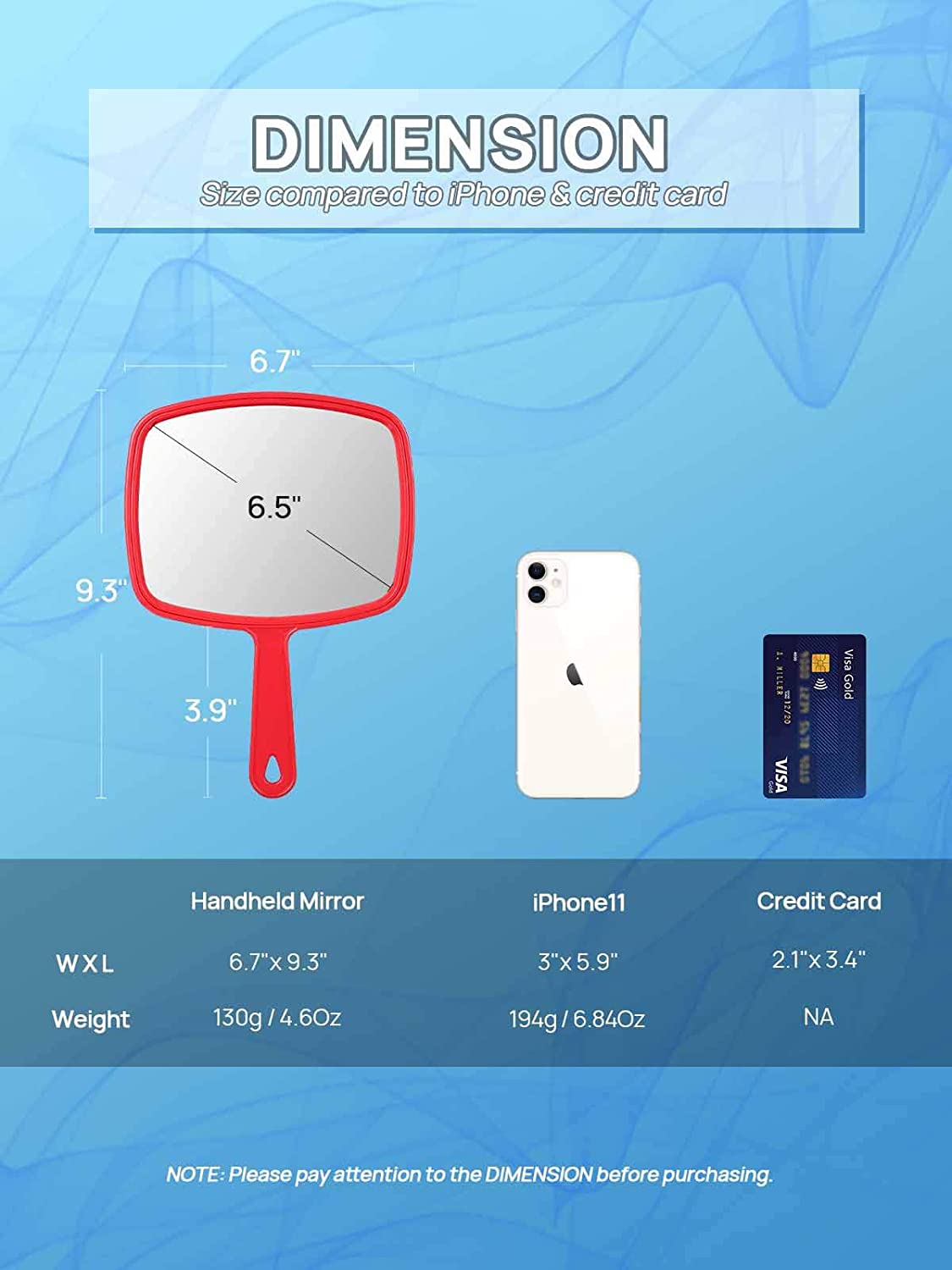 - COMPACT SIZE: 6.3"x 5.3" viewing mirror area, a travel mirror but enough to reflect anything. It's light-weight and easy to carry.